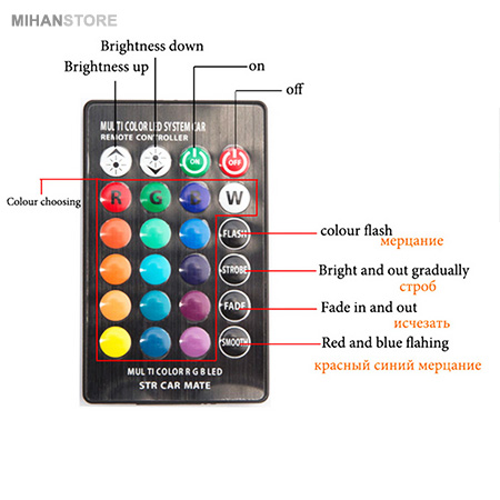 لامپ خودرو مدل Multi Color قابل نصب برای انواع چراغ کوچک, چراغ پلاک و کلیه سوکت های سکن با پایه آریایی دارای ریموت برای تغییر رنگهای لامپ و یا روشن و یا خاموش کردن و یا کم و یا زیاد کردن و حالت چشمکزن نور لامپها را دارد و مناسب برای انواع خودرو سواری و سنگین و همچنین موتورسیکلت میباشد. لامپ خوردو مدل Multi Color با لامپهای LED شش عددی باروکش ژلهای با نوردهی بسیار عالی و ریموت کنترل جهت تغییر رنگ و حالتهای نور با تولید گرمای بسیار ناچیز و مصرف بسیار کم یکی از محصولات حرفهای و بسیار پرطرفدار در نورپردازی خودرو است.