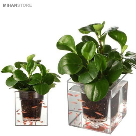 گلدان آکواریومی از سری لوازم تزئینی لوکس و مدرن است که امکان نگهداری انواع گیاه و آبزیان را به صورت همزمان در یک جا فراهم می کند. این آکواریوم دارای یک استند برای نگهداری گلدان است که می توانید گل های زینتی ، سبزه ، کاکاتوس و . . . را بر روی آکواریوم خود داشته باشید. بدنه این آکواریوم از جنس اکرولیک شفاف می باشد و با قرار دادن گلدان داخل محفظه تعبیه شده این گونه به نظر میرسد که گلدان در میان آب و ماهی های آکواریوم به صورت شناور قرار گرفته است و ماهی ها می توانند به سادگی اطراف گلدان حرکت کنند.