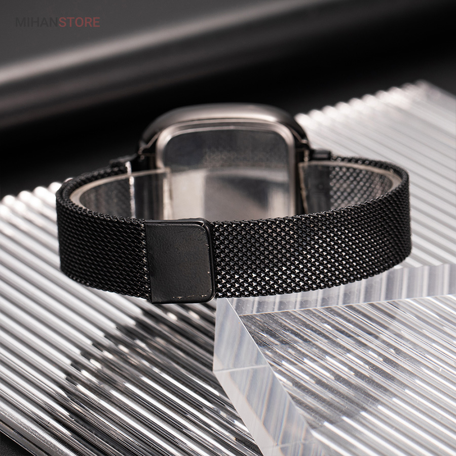 ساعت لمسی بند حصیری Spaco دارای صفحه ی نمایش دیجیتالی بوده و صفحه بسیار زیبا و شفاف که با لمس کردن صفحه نمایش اعداد به شکلی زیبا پدیدار میشود، صفحه نمایش محصول با چراغ های LED قرمز رنگ ساعت را برای شما نمایش می دهد. صفحه نمایشی و مربع شکل ساعت در ابعاد 40 × 40 میلی‌متر طراحی شده و ضخامت آن در قسمت بدنه 10 میلی‌متر است. این ساعت امکان نمایش تقویم روز را نیز دارد. ویژگی دیگر این محصول بند مگنتی و بسیار شیک آن است که قفل آن هرجایی که شما تنظیم کنید به صورت آهنربایی به بند زیرین متصل خواهد شد و مناسب تمام سایز های مختلف مچ دست است. استحکام قفل های مگنتی به قدری زیاد است که به راحتی از دست جدا نمی شوند و امکان باز شدن خود به خودی قفل ها تقریبا محال است. این ساعت در رنگهای زیبا برای تمام سلیقه ها عرضه شده است که هنگام ثبت سفارش در سبد خرید می توانید رنگ مورد نظر را انتخاب کنید.