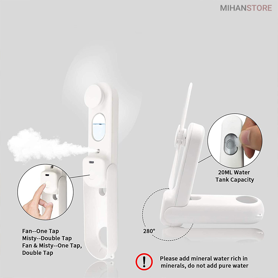 انرژی قادر به تولید باد خنک برای شما میباشد.مینی پنکه شارژی و بخور دستی CUTE CAT دارای پنکه و بخور سرد که امکان استفاده هر کدام به تنهایی را داراست. درب سیلیکونی پشت پنکه جهت پر کردن آب تعبیه شده که با پر کردن مخزن دستگاه به وسیله آب و تکمیل شارژ دستگاه به جز یم پنکه همراه، بخور سرد هم در همه جا همراه شماست. پنکه و بخور دستگاه رو می توانید به صورت جداگانه و یا باهم روشن کنید.