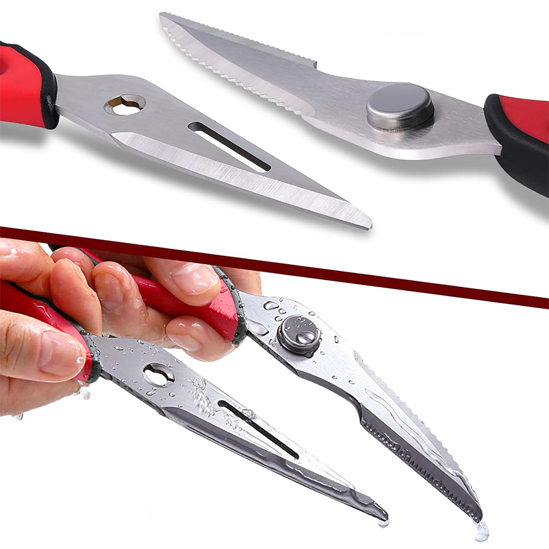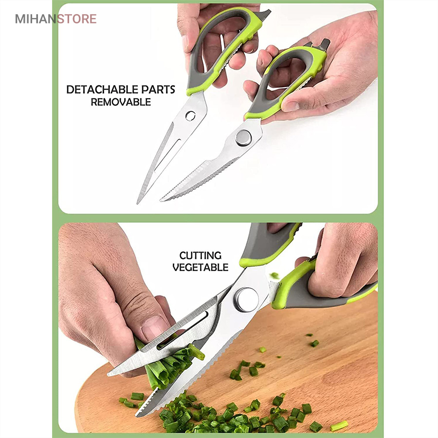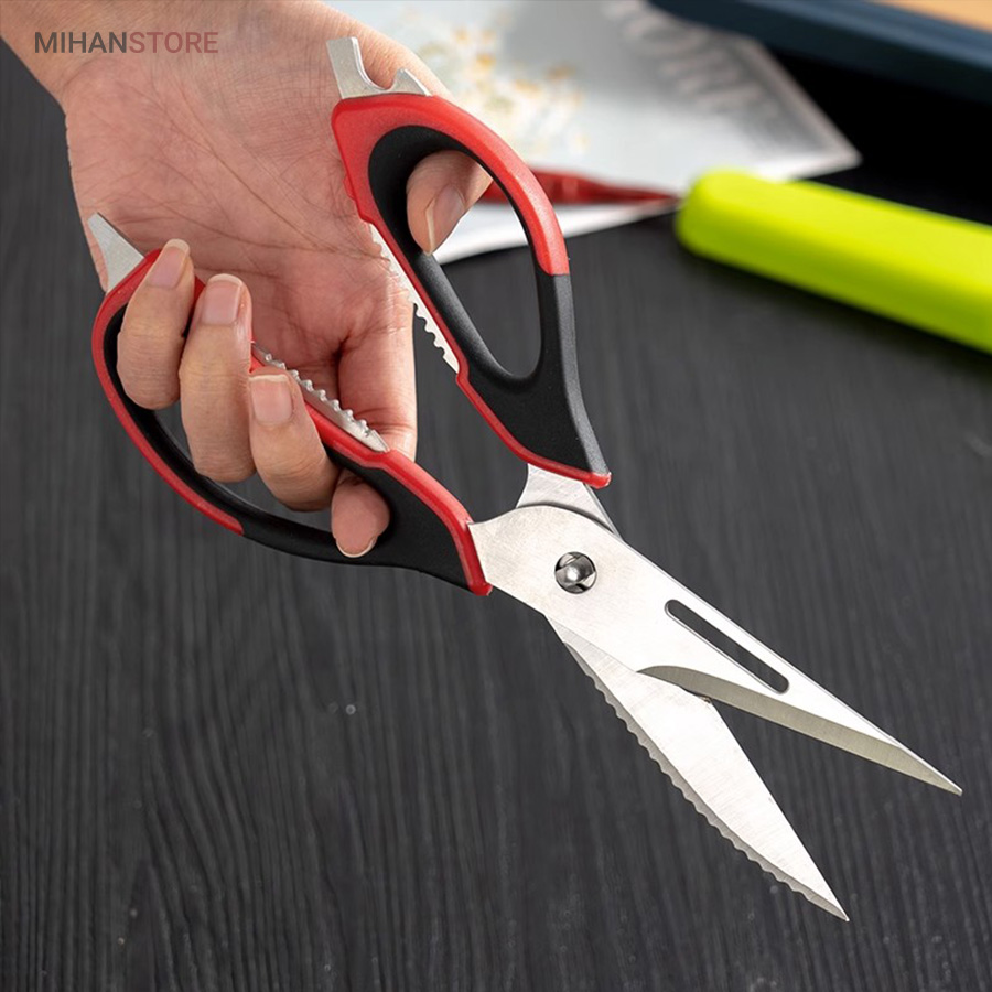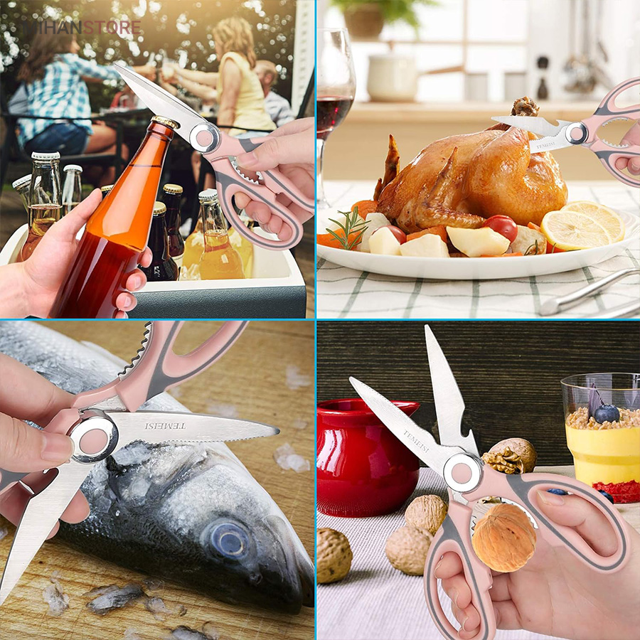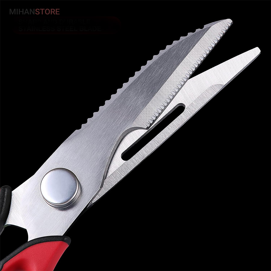 هم قیچی، هم بازکن، هم کابل کش و هم چاقو! این قیچی جادویی 8 کاره باورنکردنی در هر زمینه ای مفید خواهد بود. محصولی کاملاً جدید که باید در کار آشپزخانه خود داشته باشید و کار شما را آسان‌تر می‌کند و نمی‌توانید نزدیک آن باشید. در آشپزخانه می توانیم هنگام سرو مرغ، سبزیجات را خرد کنیم یا به راحتی استخوان ها را برش دهیم. می توانید از آن به عنوان کرکر فندقی یا گردو استفاده کنید. به راحتی می توانید درب بطری های خود را باز کنید. به طور خلاصه، به لطف قیچی جادویی 8 کاره، کاری که در زندگی روزمره انجام می دهید اکنون کاربردی تر شده است. قابل شستشو در ماشین ظرفشویی می باشد.