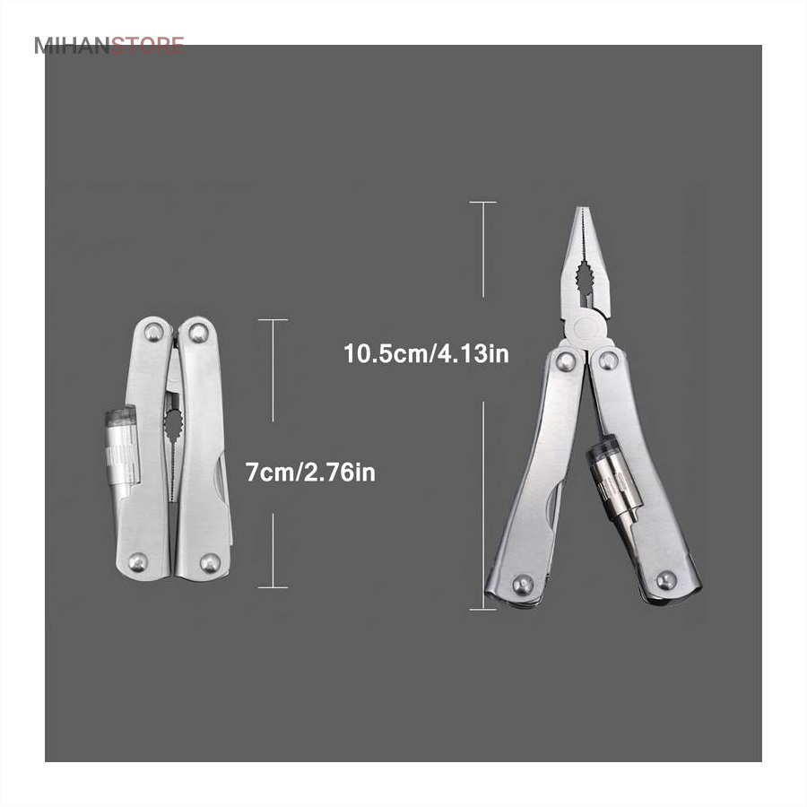 بسیاری مواقع در طول روز یا زمان سفر، به ابزار بسیار ساده‌ای مانند پیچ‌گوشتی، چاقو و… نیاز پیدا می‌کنید؛ ولی قطعا هیچ‌کس نمی‌تواند همه‌ی این ابزارها را در کنار خود داشته باشد. در چنین شرایطی یک مجموعه‌ابزار، بسیار کارآمد خواهد بود. این محصول ۷ ابزار با ۹ عملکرد دارد. از ابزارهای داخلی این محصول می‌توان به «در بطری باز‌کن» اشاره کرد که برای بازکردن در بطری نوشابه به شما کمک می‌کند. همچنین این محصول یک «تیغه چاقوی کوچک» دارد که برای آشپزی در زمان سفر کاربردی است. از دیگر ابزارها می‌توان به «اره» اشاره کرد که تقریبا تیز است و برای کارهای ظریف استفاده می‌شود. یک «پیچ‌گوشتی چهارسو» نیز در این مجموعه لحاظ شده است تا بتوان در صورت لزوم، با خیالی راحت از آن استفاده کرد. بدون شک کاربردی‌ترین ابزار این مجموعه «چراغ‌قوه‌» است. این چراغ‌قوه به صورت پیچی روشن و خاموش می‌شود و نور مناسبی برایتان تولید می‌کند. اصلی‌ترین ابزار این وسیله «انبردست» است که به‌نسبت اندازه‌اش، قدرت مناسبی دارد. قسمت پایینی انبردست نیز به دلیل تیغه‌هایی که دارد، مانند سیم‌چین عمل می‌کند. برای اینکه بتوانید این محصول را با راحتی بیشتری حمل کنید، کیف کوچکی نیز همراه آن عرضه شده است.