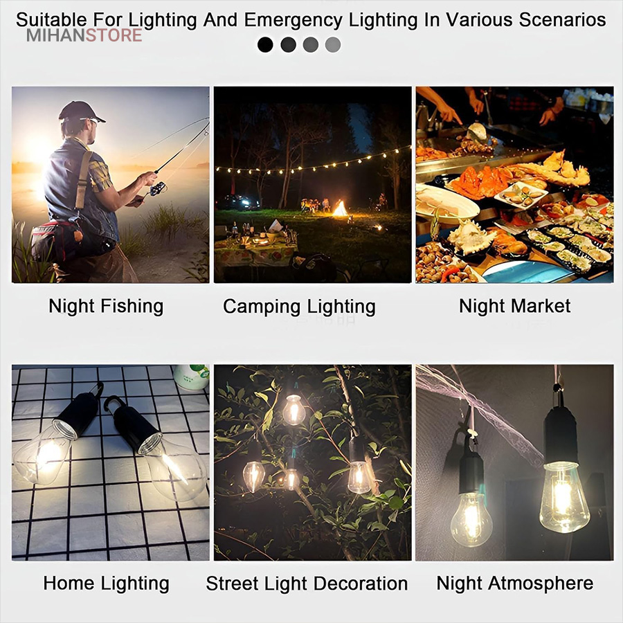 لامپ شارژی کمپینگ فیلامنتی با طراحی ساده و زیبایی که دارد می تواند برای انواع فعالیت ها از جمله کمپینگ، کوهنوردی، ماهیگیری، کار در معدن، کشاورزی و تعمیر ماشین و… مورد استفاده قرار داد.  همچنین این محصول از لحاظ حالات نوردهی دارای  حالت نوردهی آفتابی بود و قابل شارژ با آداپتور و پاوربانک و درگاه یو اس بی میباشد. این محصول دارای 3 حالت نور دهی کم نور، نور متوسط و پر نور هست که توسط دکمه روی آن قابل تنظیم می باشد.