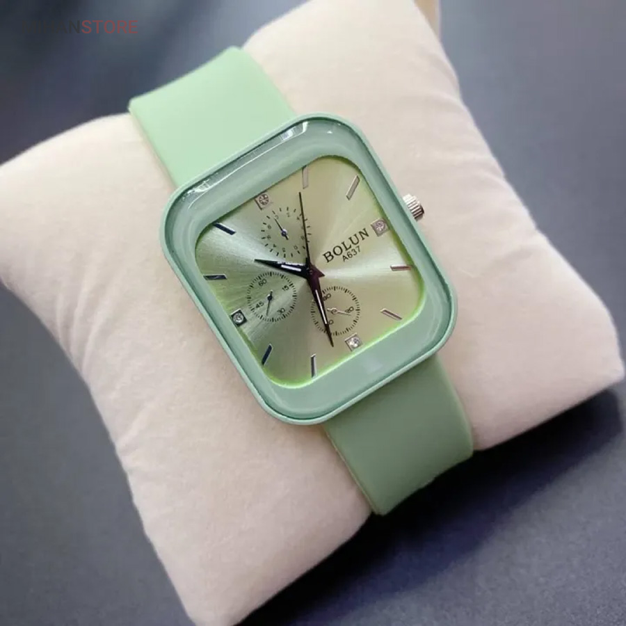 ساعت مچی از قدیم تا امروز یکی از ابزار های سنجش زمان بوده و هست اما تفاوتی که میتوانیم در ساعت مچی های امروزه حس کنیم، اهمیت وجود آنها در استایل هر شخص است. اگر که شما به نوع و سبک لباس پوشیدنتان اهمیت میدهید و میخواهید در نگاه اطرافیان یک شخص ایده آل باشید، پس باید ساعت مچی را به عنوان بخشی از استایل تان بدانید و هنگام خرید ساعت مچی به سبک استایل خودتان توجه کنید. ساعت مچی بیانگر دقت و ارزشی است که شما به استایل خود قائل هستید.این محصول یکی از جذابترین ساعت های موجود در بازار است که طرح مستطیل طراحی شده است. این ساعت دارای وزن سبک است و سنگینی زیادی روی مچ دست شما ندارد.صفحه بسیار زیبا و شفاف و بند این ساعت سلیکونی است و قفل آن سگکی طراحی شده که مناسب هر سایزی است. این ساعت همراه با جعبه کادویی شکیل ارسال میشود در رنگ های متنوع پاستیلی و جذاب عرضه شده است که در سبد خرید می توانید رنگ مورد نظر را انتخاب کنید.