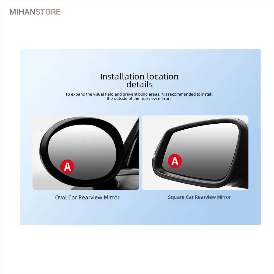 بهترین محل برای نصب و چسابندن آینه نقطه کور، قسمت بالای و گوشه خارجی آینه است به طوری که آینه کمکی مماس بر پلاستیک گوشه آینه بغل ماشین باشد. در این حالت بیشترین پوشش را این آینه برای شما خواهد داشت. یکی از کاربردی ترین ابزارها برای خودرو آینه سکه ای میباشد که بهترین کارایی را در پارک دوبل و افزایش دید جانبی دارد. این آینه یک سکه محدب پشت چسب دار است که براحتی در هر نقطه آینه خودرو قابل نصب است.البته توصیه میشود در گوشه آینه خودرو نصب کنید تا مانع دید اصلی آینه نباشد.