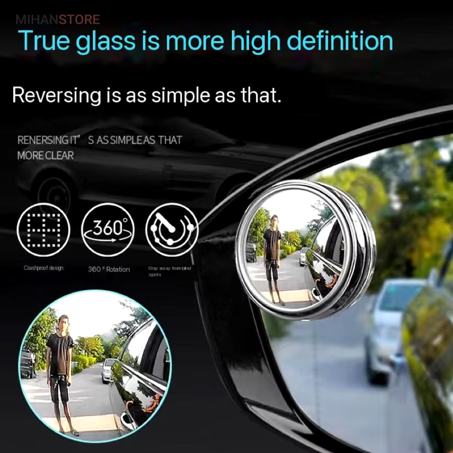 آینه محدب بغل خودرو آینه ای است که روی آینه بغل از هر دو طرف بوسیله چسب قوی نصب می شود و نقاط غیر قابل دید از طریق آینه ها را برای راننده قابل دید می کند. اندازه این آینه 6.575 x 4.528 اینچ 0.748 اینچ می باشد. همچنین این آینه قابلیت تنظیم و حرکت 360 درجه را نیز دارد. این آینه برای انواع سواری و کامیون و موتور و... کاربرد دارد.