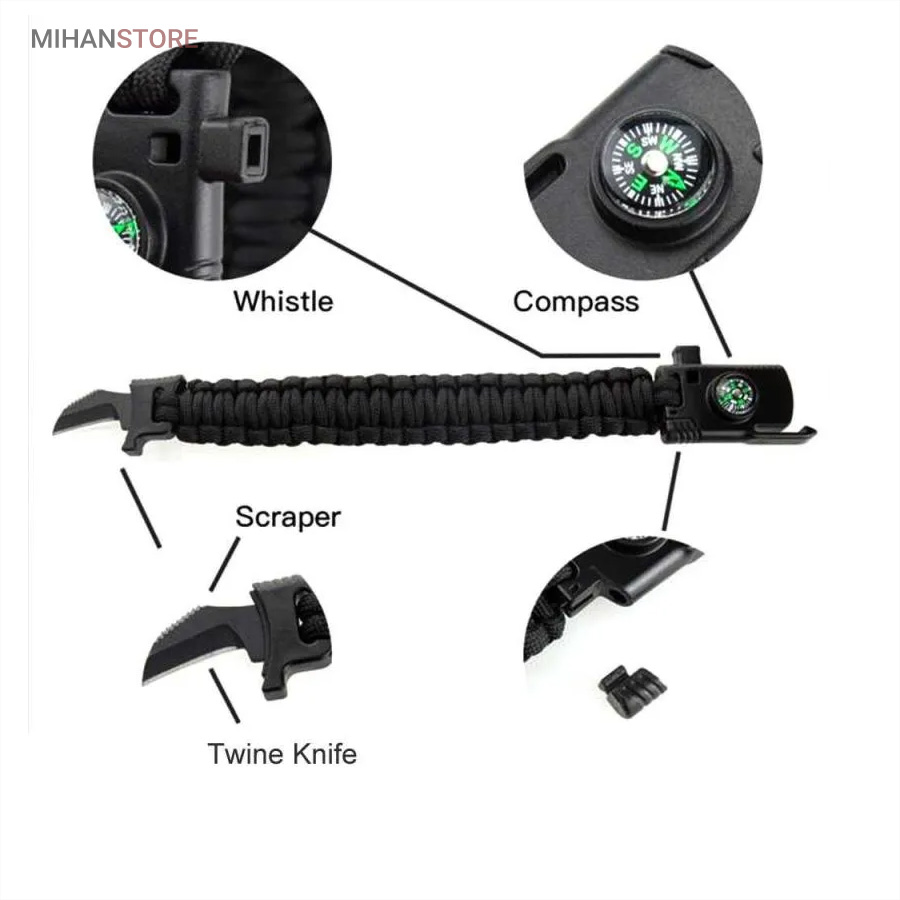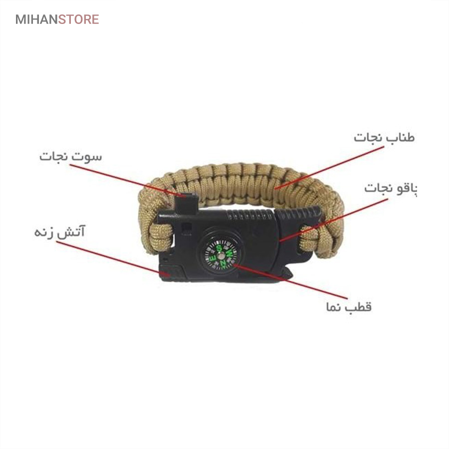 دستبند نجات، پاراکورد بقاء، دستبند چندکاره، ابزار نجات طبیعت‌گردی، دستبند کمپینگ، بقاء در طبیعت، ابزار مسافرتی، سوت اضطراری، دستبند پاراکورد کنترل‌دار، دستبند کوهنوردی