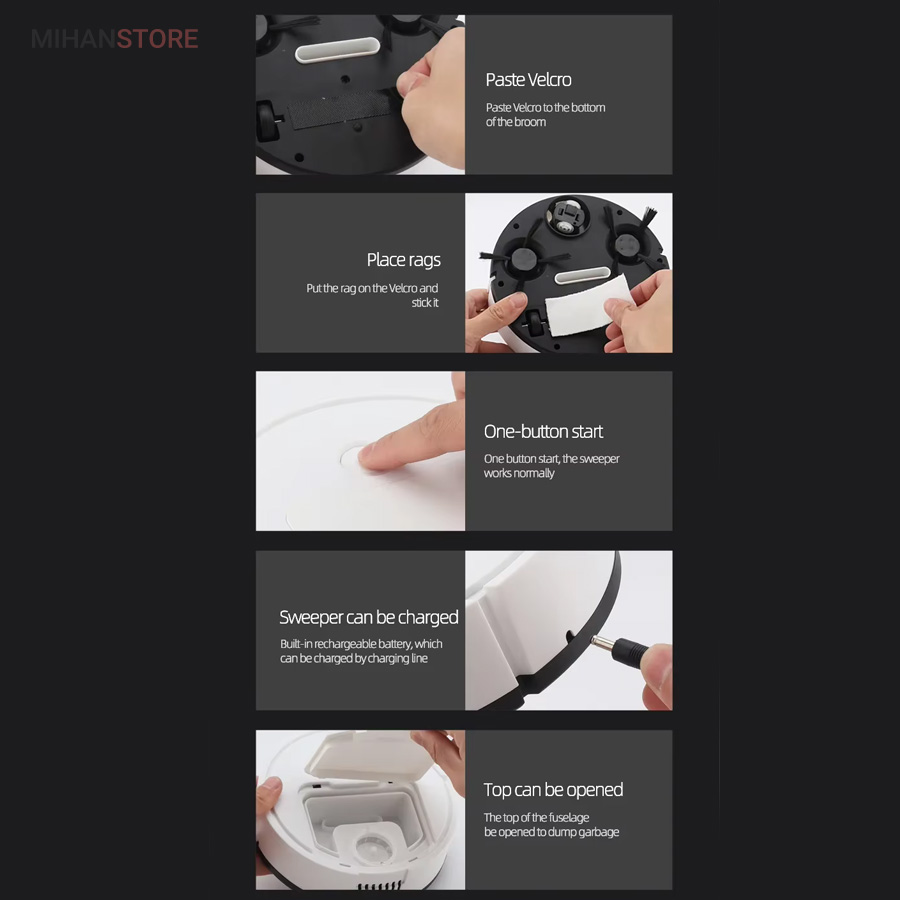 مینی جارو هوشمند شارژی جاروی هوشمند کوچک با باتری بادوام و مخزن جداشدنی
