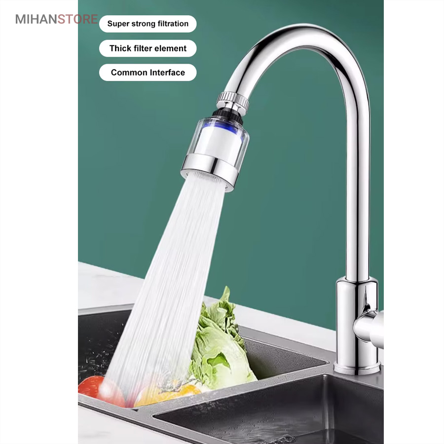 سرشیر تصفیه آب باعث میشود تا ذرات ریز آب فیلتر شود تا آبی تمیز تر نیز برای نوشیدن داشته باشید در اصطلاح باعث کاهش سختی آب میشود و بسیار مناسب استفاده برای نوشیدن شستشو و تبخ غذا میباشد، این محصول دارای دو فیلتر یدک که جمعا با فیلتر دستگاه 3 فیلتر برای شما ارسال میشود که میتوانید در صورت لزوم تعویض کنید.با قابلیت چرخش و مجهز به فیلتر، قادر است بطور کامل در تمام جهات بچرخد، تا به هر نقطه‌ای از سینک یا روشویی دسترسی پیدا کند و امکان شستشوی راحت را بدهد. این سر شیر آب، با استفاده از ترکیبی از مواد باکیفیت و پلاستیک ABS، عمر طولانی و دوام بی‌نظیری دارد. همچنین، فیلتر در آن، ناخالصی‌ها و سختی‌های آب شبکه را جدا کرده و خروجی آبی با کیفیت برتری را فراهم می‌کند.