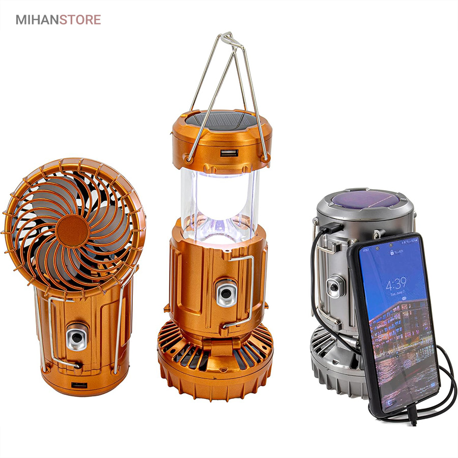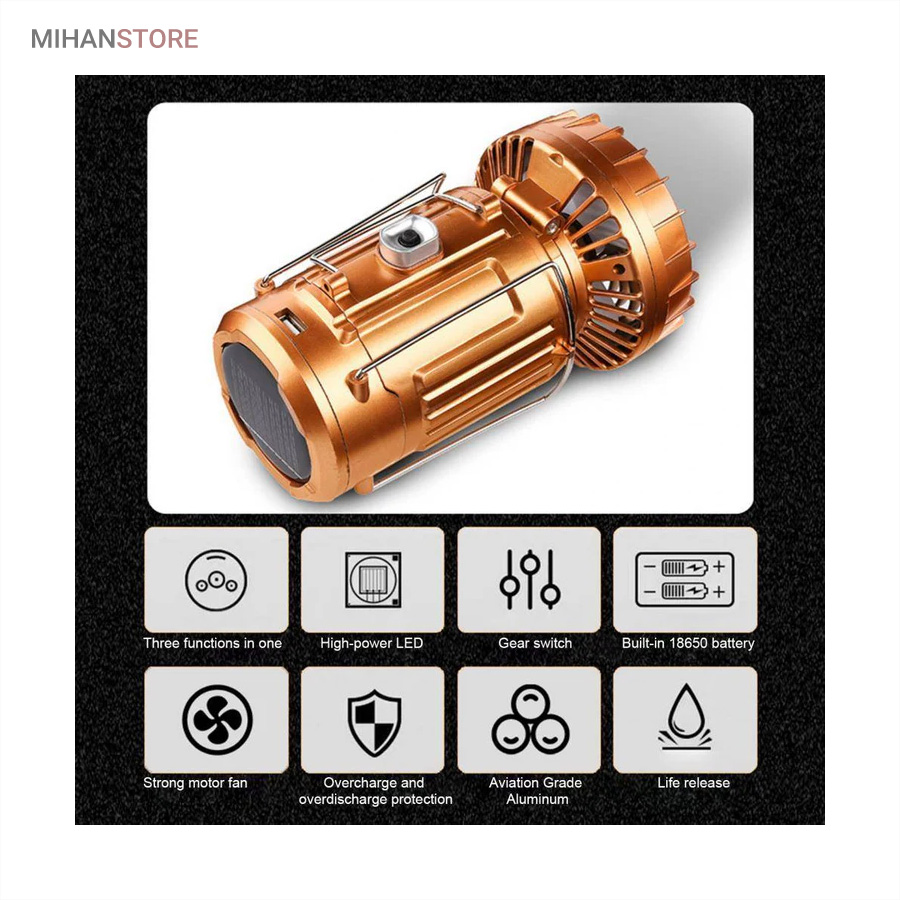 چراغ کمپینگ خورشیدی دارای پنکه و پاوربانک