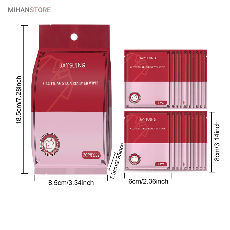 پد پاک کننده لکه لباس Eunmsi (بسته 20 عددی) پاک‌کننده فوری انواع لکه از روی لباس، بدون نیاز به شستشو