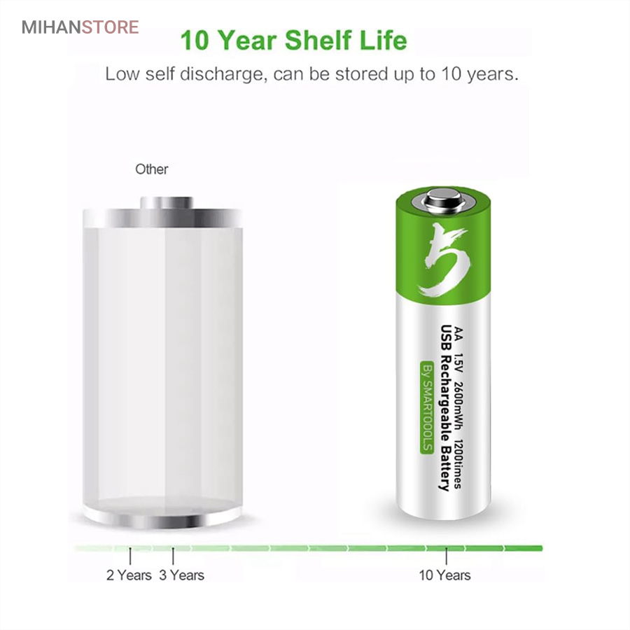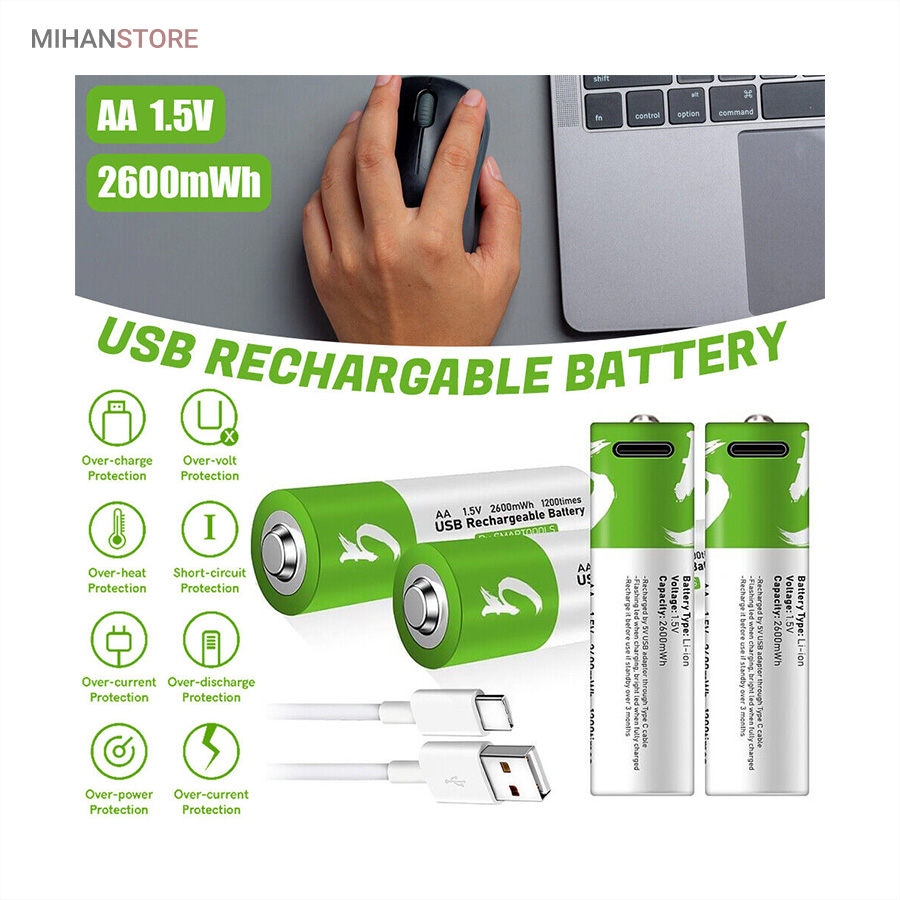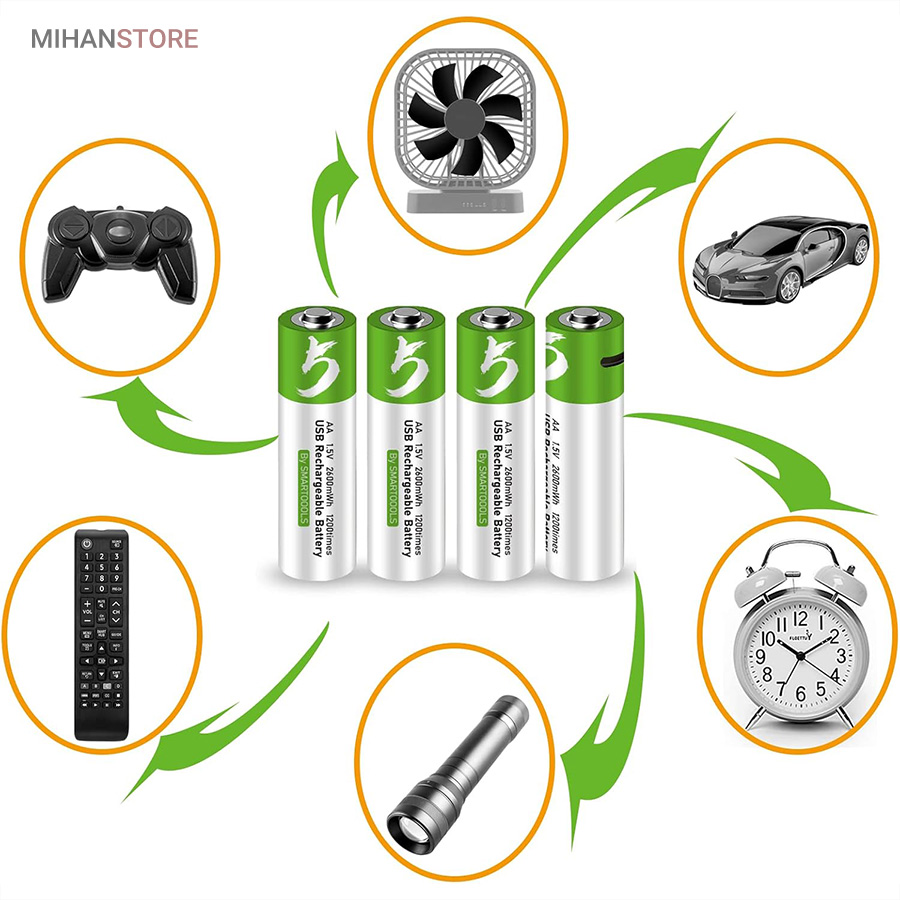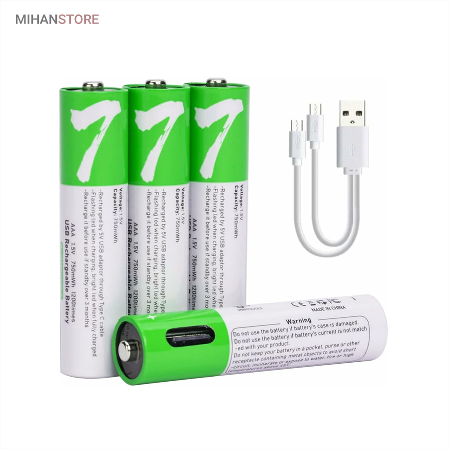 باطری قلمی قابل شارژ همچون یک پاور بانک عمل نموده و به راحتی قابل شارژ می باشند ، کابل شارژ باتری از نوع Type_C بوده و کافی است طرف USB را به دستگاه تامین کننده برق وصل نمایید تا ظرف 1-1.5 ساعت باتری ها شارژ شوند این باتری ها با قابلیت ۱۲۰۰ مرتبه شارژ از طول عمر بلند مدتی برخوردارند . مناسب برای ؛ مسواک های برقی ، ریموت کنترل ، ماوس بیسیم ، ماشین حساب ، گوشی تلفن ، اسباب بازی ها و ... میباشد این باتری ها دارای استانداردهای کیفیت CE & FCC میباشند .
