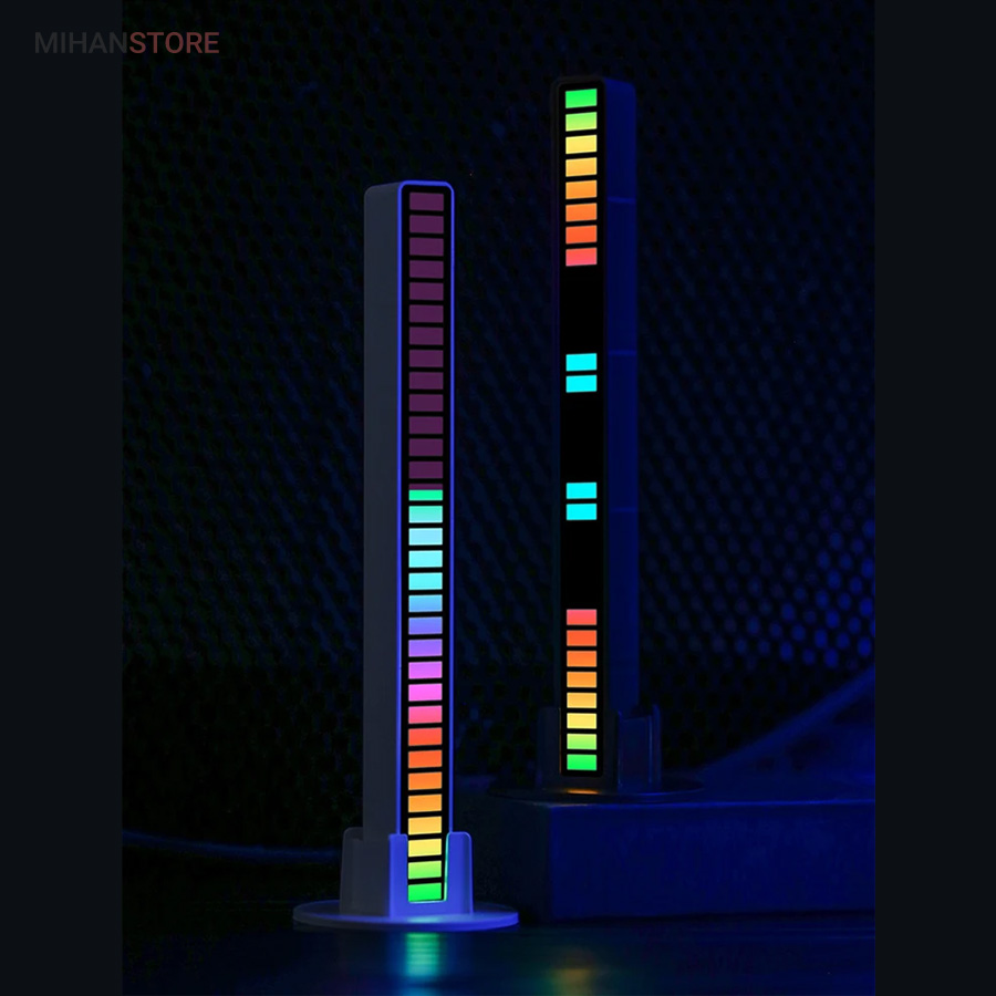 رقص نور اکولایزر حساس به صدا RGB LED یک دکور RGB است که با استفاده از سنسور های صوتی ای که دارد میتواند بر اساس صدای محیط لامپ های آر جی بی خود را به حرکت در آورد و یک رقص نور جذاب را در کنار موسیقی برای شما ایجاد کند. این محصول از نوع برقی بوده و دارای باتری داخلی نمی باشد و نیازی است برای استفاده به صورت مدام به برق متصل باشد. این محصول دارای پایه استند میباشد و که میتوانید به صورت عمودی آن را در هر سطحی که نیاز دارید قرار دهید و علاوه بر آن دارای چسب دو طرفه نصب نیز هست که میتوانید به سطوح مختلف این محصول را بچسبانید و از آن لذت ببرید . مود های سرعت و افکت های حرکت لامپ ها از طریق پنل پشتی قابل تنظیم است.