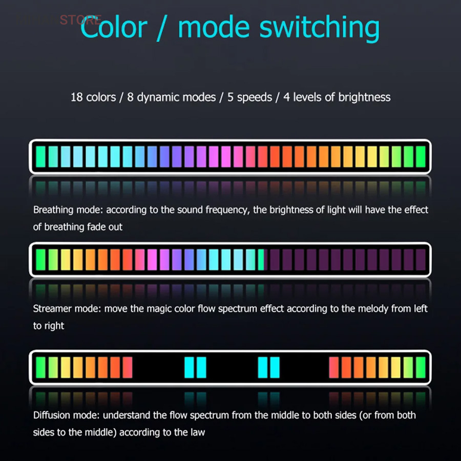 به همراه 15 مود تغییر اکولایزر و 15 مود رنگی متفاوت قابل تنظیم