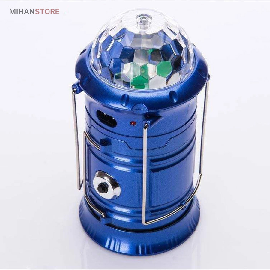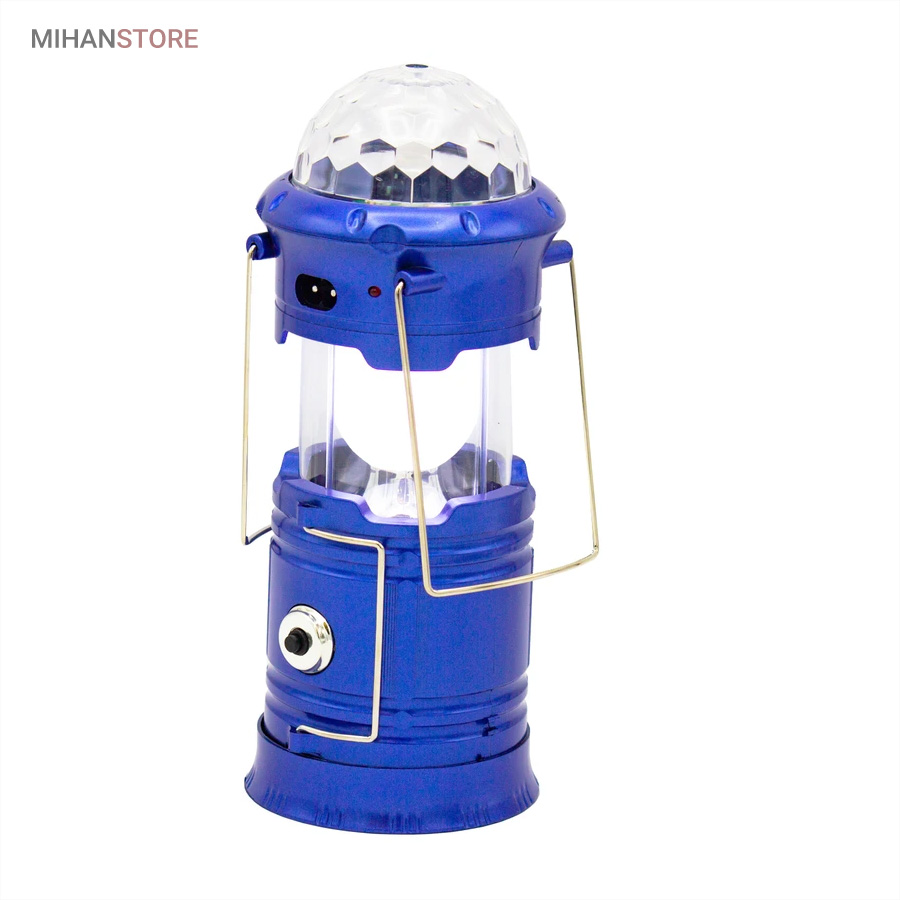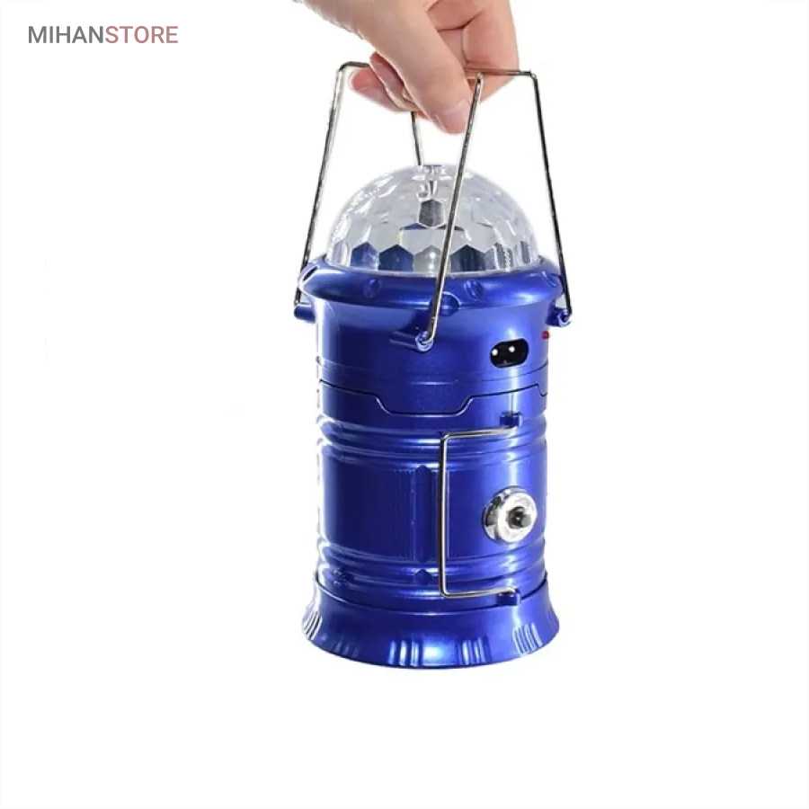 چراغ کمپینگ شارژی رقص نور دار با قابلیت جمع شدن و دو مدل نور دهی که علاوه بر روشن شدن محیط امکان پرتاب نور به نقاط دور تر را فراهم میکند .بر روی این فانوس لامپ های رنگی وجود دارد که با حالت چرخشی رقص نور جذابی را ایجاد میکند .مناسب برای زمان تاریکی و برای مهمانی های خانوادگی تا از رقص نور آن استفاده کنید .