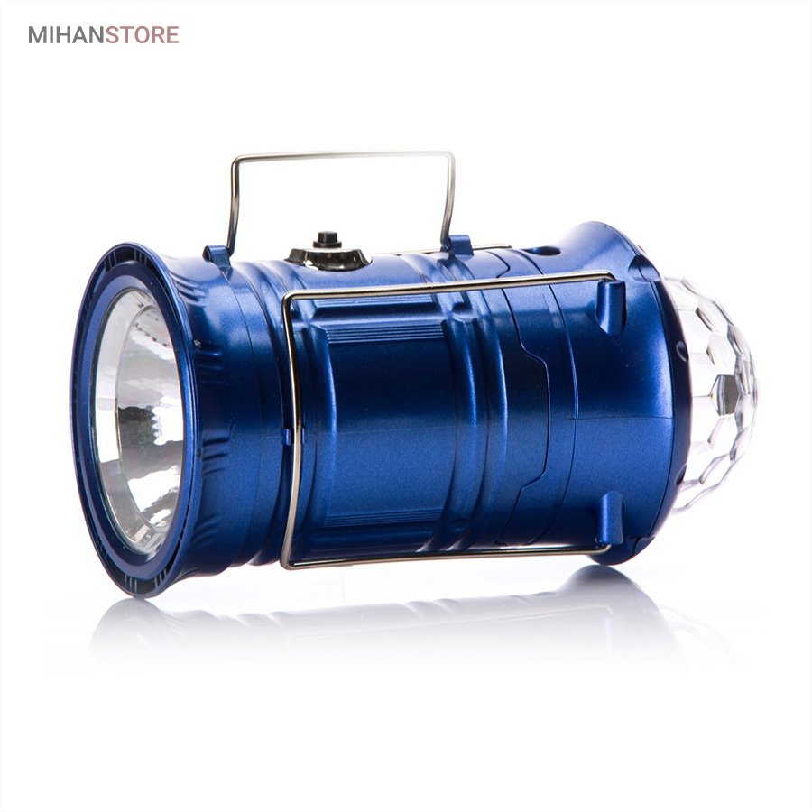چراغ کمپینگ شارژی رقص نور دار قابل حمل به همراه رقص نور، محصولی با طراحی نوین و بسیار کاربردی است . این چراغ را میتوان تلفیقی از فانوس های قدیمی و چراغ قوه های جدید و رقص نور مدرن دانست .چراغ کمپینگ شارژی رقص نور دار، در واقع یک ابزار چند کاره است و میتواند به سادگی نیاز های شما در رابطه با نور را در مسافرت، پیک نیک و جشن های خانواگی و مواردی نظیر آن فراهم کند . شما میتوانید با کشیدن سر چراغ به سمت بالا (کشویی)، فانوس را روشن کنید و از آن برای تأمین نور محیط استفاده نمایید. چراغ اصلی فانوس دارای 6 چراغ ال ای دی است که در کنار هم نور قوه ای را ایجاد میکنید. همچنین در بالای این فانوس یک شیشه منشوری وجود دارد که هنگام روشن کردن با چرخش و نور پردازی فضای دل انگیزی را برای شما به وجود میآورد. این محصول خرید خوبی برای استفاده در کمپینگ و طبیعتگردی خواهد بود.ورودی برق روی دستگاه بوسیله سیم همراه به برق وصل شده و چراغ را شارژ مینماید تا بتوانید به صورت بی سیم از چراغ استفاده نمایید.خروجی یو اس بی روی دستگاه نیز برای شارژ تلفن همراه شما تعبیه شده است و برای شارژ کردن گوشی موبایلتان است.جنس بدنهی این محصول سبک و کم حجم، جنس بدنه از ABS + PC، محکم و بادوام است که بهسادگی آسیب نمیبیند و این امکان را به شما میدهد تا مدتزمان زیادی بهصورت مستمر از آن استفاده کنید. این محصول وزن قابلقبولی دارد و شما میتوانید بهراحتی آن را حمل کنید و در سفرها به همراه داشته باشید.