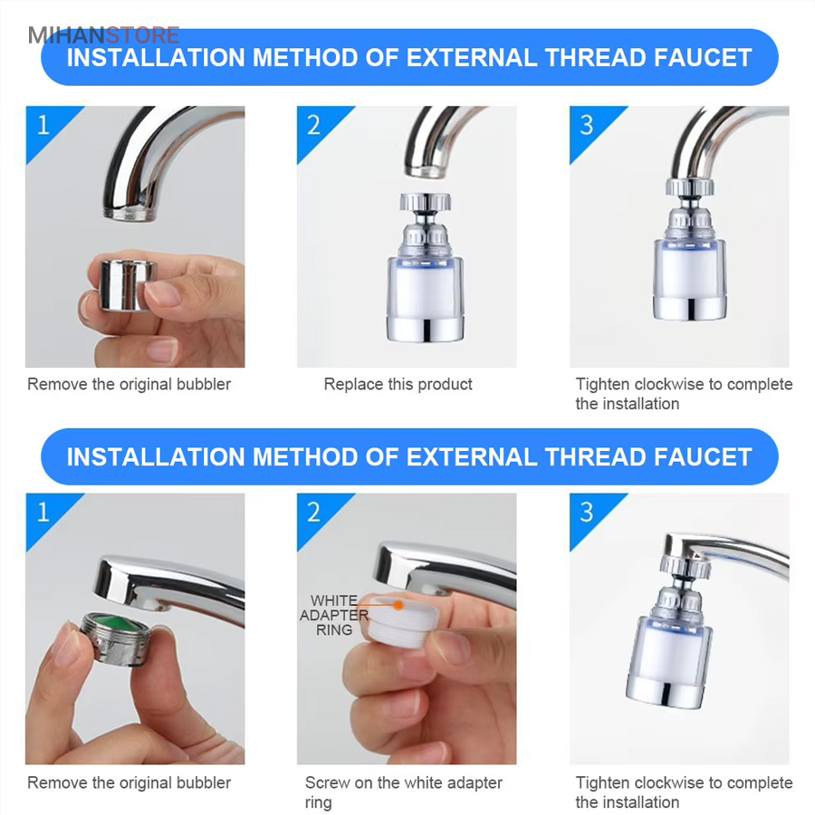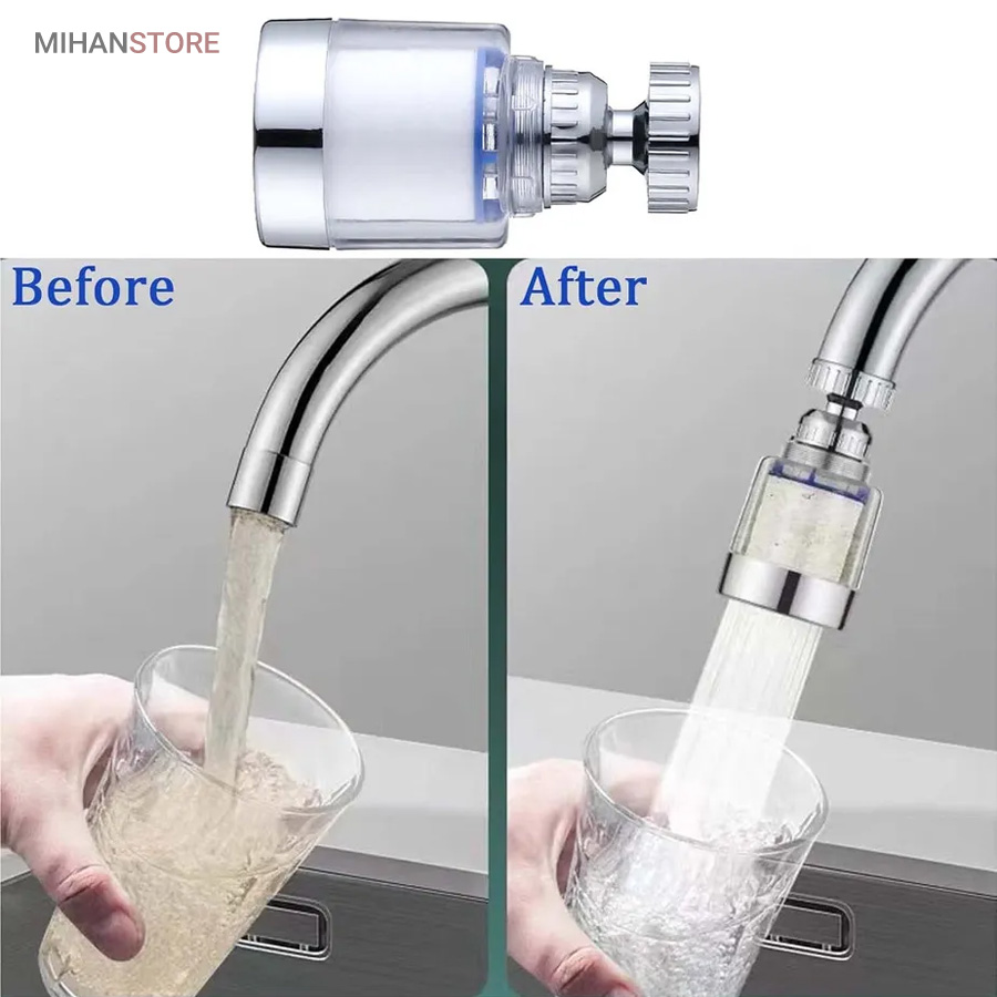 سرشیر تصفیه آب باعث میشود تا ذرات ریز آب فیلتر شود تا آبی تمیز تر نیز برای نوشیدن داشته باشید در اصطلاح باعث کاهش سختی آب میشود و بسیار مناسب استفاده برای نوشیدن شستشو و تبخ غذا میباشد، این محصول دارای دو فیلتر یدک که جمعا با فیلتر دستگاه 3 فیلتر برای شما ارسال میشود که میتوانید در صورت لزوم تعویض کنید.با قابلیت چرخش و مجهز به فیلتر، قادر است بطور کامل در تمام جهات بچرخد، تا به هر نقطه‌ای از سینک یا روشویی دسترسی پیدا کند و امکان شستشوی راحت را بدهد. این سر شیر آب، با استفاده از ترکیبی از مواد باکیفیت و پلاستیک ABS، عمر طولانی و دوام بی‌نظیری دارد. همچنین، فیلتر در آن، ناخالصی‌ها و سختی‌های آب شبکه را جدا کرده و خروجی آبی با کیفیت برتری را فراهم می‌کند.